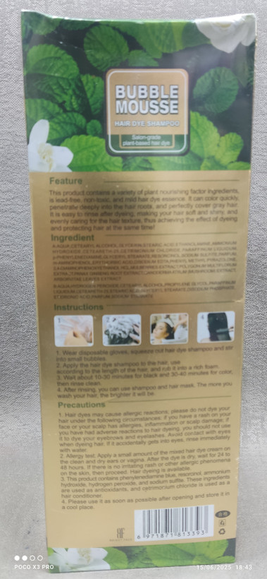 شامپو رنگ گیاهی بابلموس کپی 500میل معروف به ژلاتین رنگ مشکی