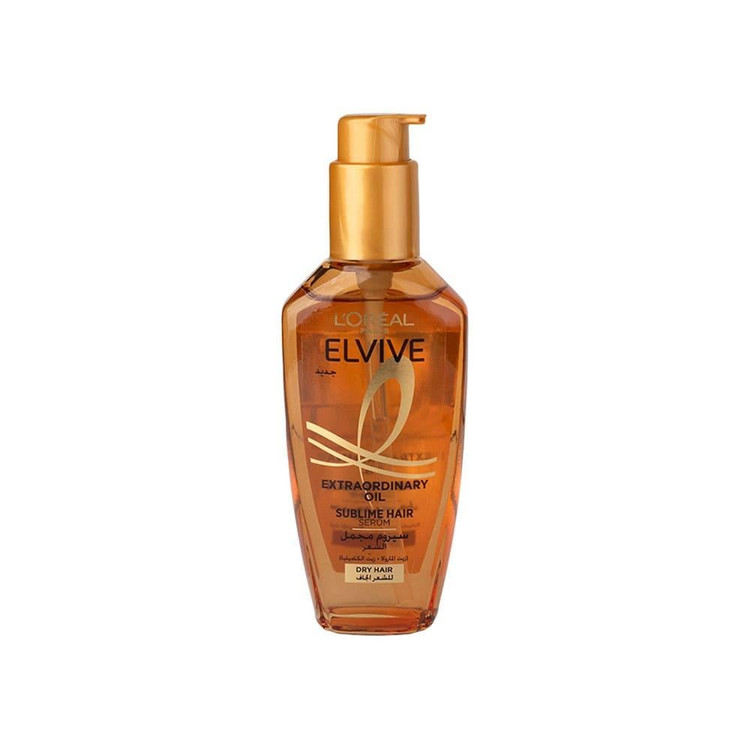 محصول نمایش داده شده در تصویر، سرم موی "L'Oréal Paris Elvive Extraordinary Oil Sublime Hair Serum" مخصوص موهای خشک است.